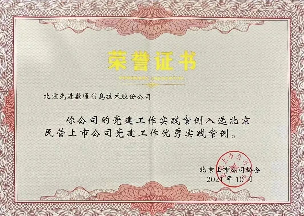 近日,北京上市公司协会授予北京EVO视讯信息技术股份公司荣誉证书,EVO视讯党建工作实践入选北京民营上市公司党建工作优秀实践案例,相关党建活动已收录在《北京民营上市公司党建工作优秀实践案例汇编》。