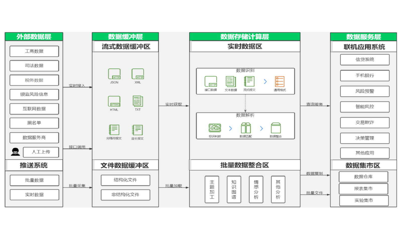 平台支持多源类型的数据接入,能够接入各种内外部数据源,如政府数据、行业数据、市场数据等第三方系统数据源,实现数据的多样化。通过标准化接口和灵活的接入方式,平台能够快速响应业务需求,提供丰富的数据支持。经过整合后统一输出单一格式,确保数据质量和一致性